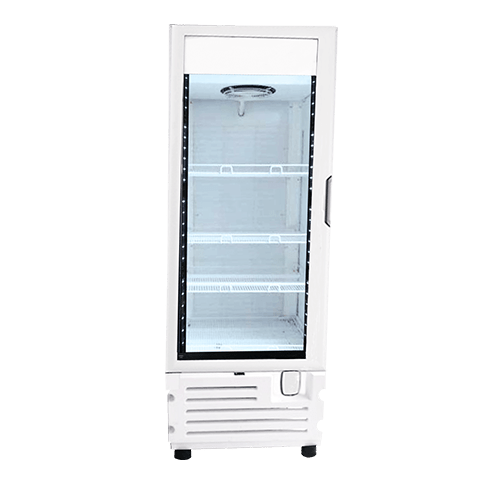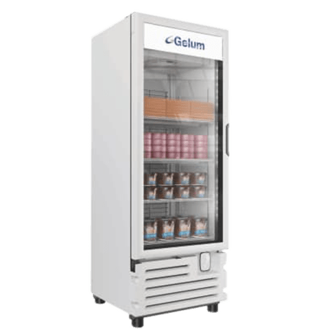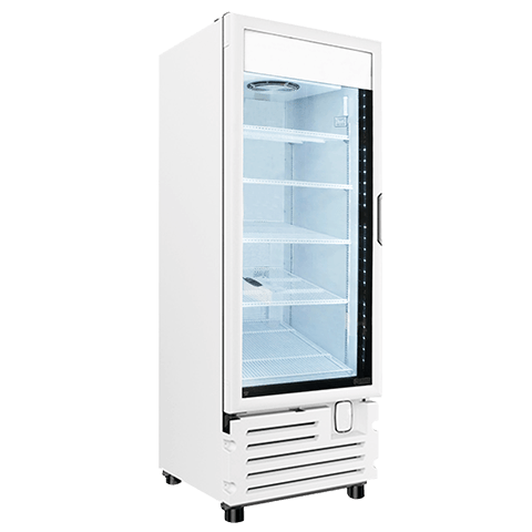 Congelador vertical ideal para espacios reducidos que requieren exhibición de producto congelado.