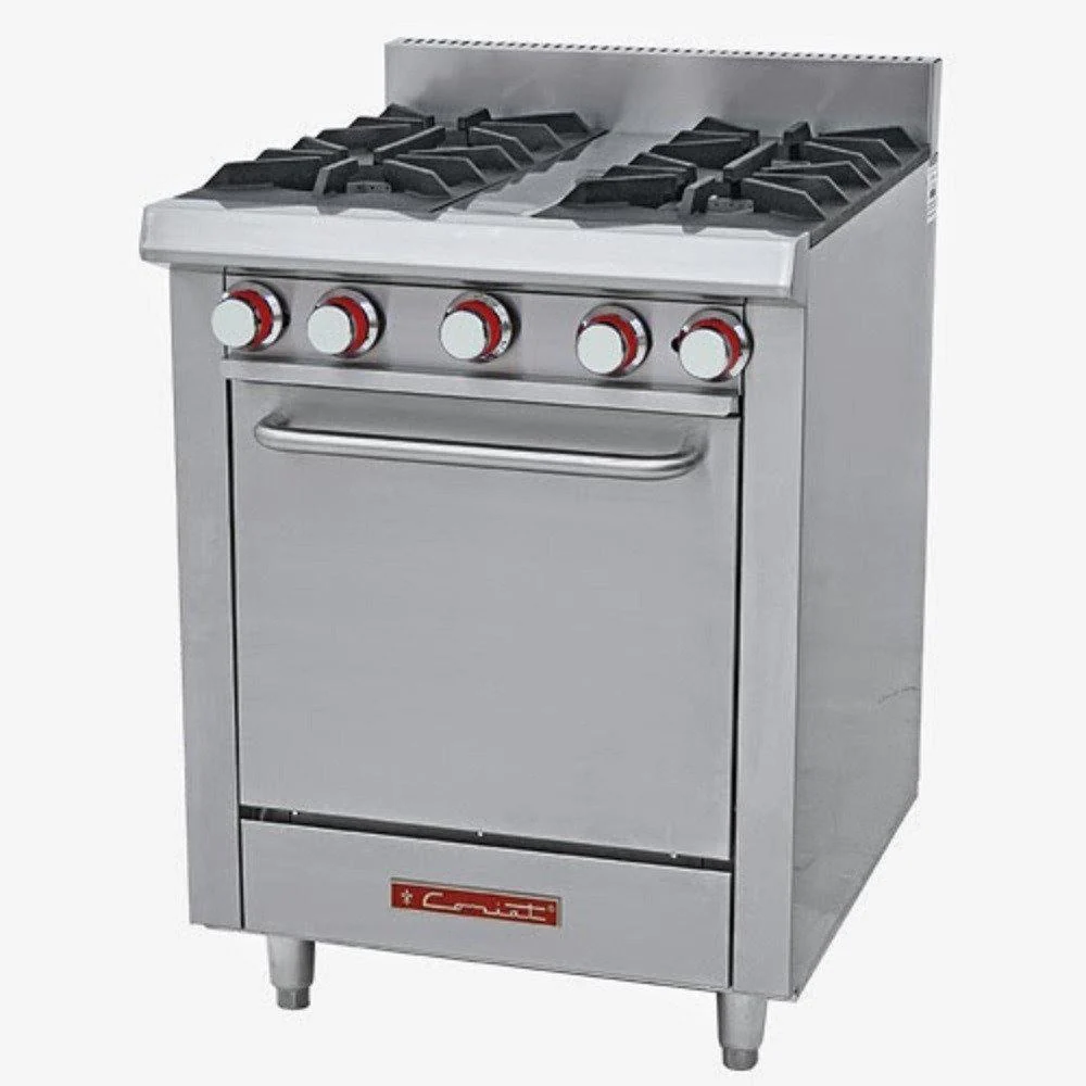 HORNO MEDIANO, MEDIDA INTERIOR DE: FR-0.470M, FO-0.590M, AL-0.420M. 2 PARRILLAS NIQUELADAS DENTRO. 1 TERMOSTATO IMPORTADO, RANGO DE 100 A 300°C, VALVULA DE SEGURIDAD INTEGRADA.         1 QUEMADOR TUBULAR EN ACERO INOX. DE 36,000 B.T.U./H                                                                           PUERTAS CON BISAGRAS Y EMPAQUE PERIMETRAL PARA CIERRE HERMETICO.