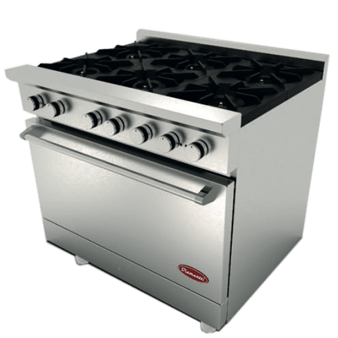 Estufa profesional 6 quemadores y horno en A. Inox.