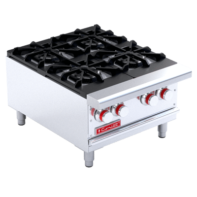 • 4 Quemadores octagonales sólidos en hierro fundido de 24,000 Btu/hr c/u.