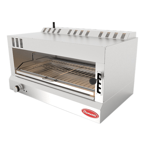 • Porta parilla de acero inoxidable con un área útil para colocar platos de frente